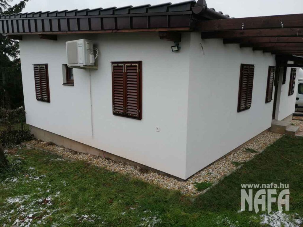 A zsalugáterek nem uralják a homlokzatot, mégis érezhetően javítják a komfortot – különösen a nyári időszakban.